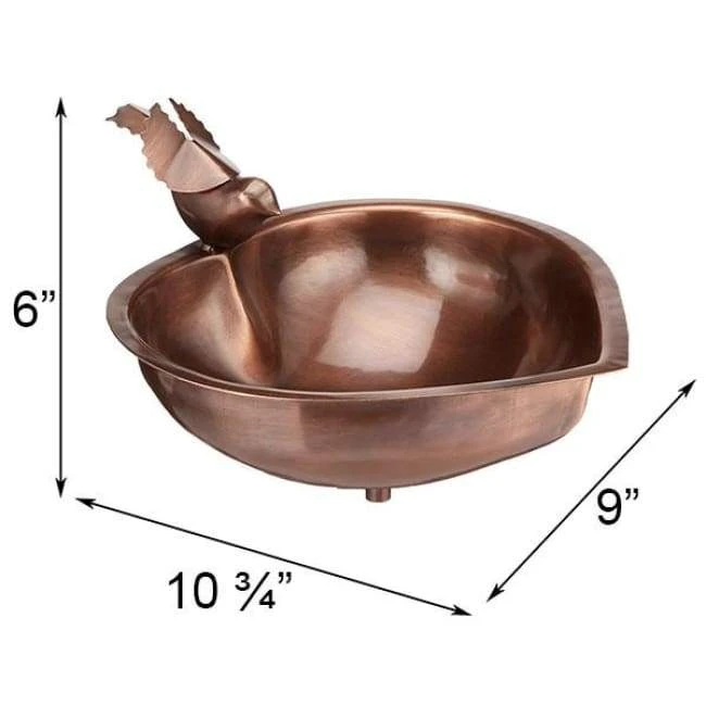 Help your backyard birds remain hydrated and clean by placing this adorable Achla Copper Colored Heart-Shaped Bird Bath in your garden. The familiar, heart shape, vivid copper color, and stylized bird figure bring a charming hint to any yard, while the bowl holds plenty of water for your feathered friends. A 0.25″ wide lip surrounds the basin, offering birds space to perch and preen, and its glossy finish shines in sun for extra dimension. A steel, stylized bird figure rests at the top of the heart shape, and its uplifted wings and tail lend height to the piece. The 2.25″ depth of the bath allows both smaller and larger birds to use it, and its stainless steel construction remains durable for many seasons. A threaded port on the base of the unit attaches to your existing Achla bracket or stake (not included), for versatility in placement. The copper hue adds a classic look to the piece, while the bird figure lends a modern hint. Provide fresh water to your backyard birds in this Copper Colored Heart-Shaped Bird Bath.