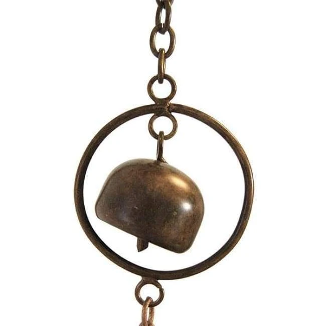 Enjoy the beauty of lilies throughout the year by adding this Ancient Graffiti Calla Lilies and Bells Rain Chain to your home. Replacing a traditional downspout with a rain chain brings personalized style to your setting, and this unit adds a floral hint to the area in moments. A line of generous, calla lily shapes captures attention, while a small bell between each flower enhances the area with gentle sound. Chain links connect each piece together, and the brown tones blend with the garden easily. An included, metal clip installs readily into your gutter, and the top hook of the chain attaches here for quick display. The recognizable lily cups each sport two extended rods on them for added realism, and their wide tops and tapered bases are great for directing rainwater. The 98″ reach is perfect for use on one or two story homes, and chain links may also be removed for truly custom sizing. The steel flowers and metal chain remain durable for many seasons, easily withstanding exposure to the elements. Bring a floral look to your downspout using this Calla Lilies and Bells Rain Chain.