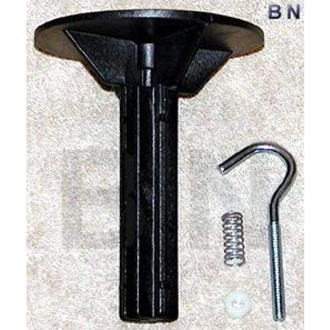 Contents: 1 black plastic pole adapter, 1 white plastic washer, 1 threaded hook, 1 spring