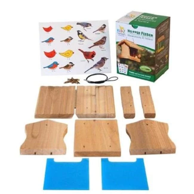 Awaken your child’s interest in birding and woodworking with this Woodlink Classic Hopper Feeder DIY Craft Kit. This kit contains a wealth of precut wood pieces and plastic panels, for building a traditional hopper feeder easily. The components connect together using only a screwdriver, while included stickers allow your child to customize the piece. The wooden sections can also be painted, for a further personalized look, and a booklet of fun facts about birds offers an educational element. Once built, the center reservoir holds 1 quart of mixed seed, and the lapped roof protects food from rain and snow. An included cable enables you to place the feeder on a hook or bracket, and one side of the lid lifts for refilling. The wooden body offers durability and versatility, and the classic shape adds a timeless look to your yard. Help your child enjoy bird feeding with this Classic Hopper Feeder DIY Craft Kit. Assembly required. Made in the USA.Â